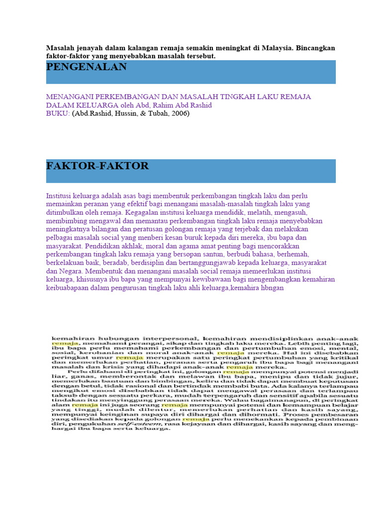 Malek, phd sekolah psikologi & kerja sosial universiti malaysia sabah i da shafinaz mohamed kamil. Sekaligus kadar jenayah dalam kalangan masyarakat juga akan meningkat yang mana hal ini disebabkan oleh kadar keruntuhan akhlak di kalangan peranan ibu bapa jelas sekali merupakan solusi yang perlu diketengahkan dalam membendung masalah sosial dalam kalangan remaja ini. Kesan penggunaan internet dalam pelajar. Antaranya ialah didikan yang kurang sempurna daripada ibu bapa dan keluarga. Siti nurul nabihah bt mohamad.