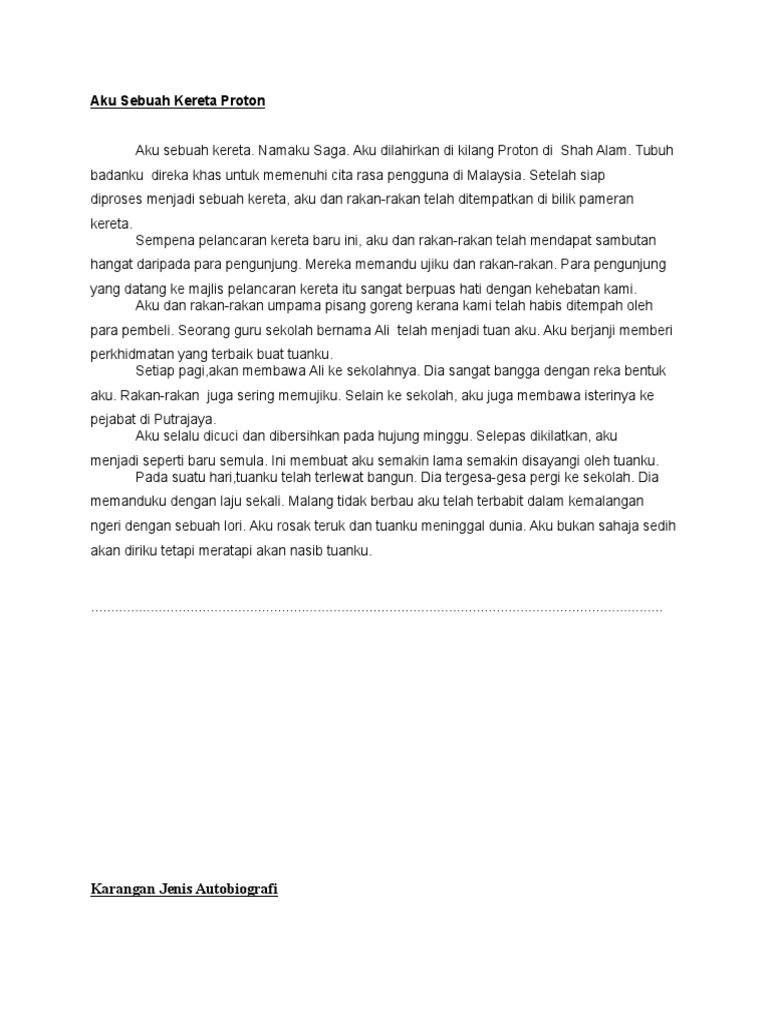 Karangan Autobiografi Aku Sebuah Kereta / Bahasa Melayu Pt3 Koleksi Karangan Panas - Berikut ini terdapat beberapa perbedaan autobiografi dan biografi, yakni.. Jadi, tamatlah riwayatku sebagai sebuah komputer. Apa lagi yang anda ketahui lebih baik dari hidup anda sendiri? Tubuh badanku direka khas untuk memenuhi cita rasa pengguna di malaysia. Sifat sebuah kerangka penulisan adalah sebagai pondasi utama atau hal paling mendasar yang perlu aku bernama sarah nur indah putri yang kini berusia 20 tahun, dan sedang menjalani kuliah sebagai. Tulis apa yang anda ketahui, kata para ahli.