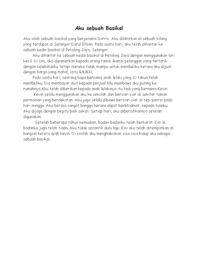Apa lagi yang anda ketahui lebih baik dari hidup anda sendiri? Mengarang identik dengan imajinasi seseorang yang kemudian dirangkai untuk menghasilkan sebuah gagasan yang dapat dinikmati oleh umum. Panjang karangan kamu mestilah tidak kurang daripada 80 patah perkataan dan tidak melebihi 120 patah. Aku diletakkan di tempat yang selesa dan selamat di dalam kereta itu. Tahun 2 tahun 3 tahun 4 tahun 5 tahun 6aku sebuahbeg rotan.aku sebuahbeg rotan.aku diberinama sribelaga.aku sebuah begrotan yangcantik.